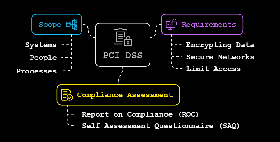 - Requirements: There are 12 high-level requirements, like encrypting data, maintaining secure networks, and limiting access to sensitive systems—basic digital hygiene, really.